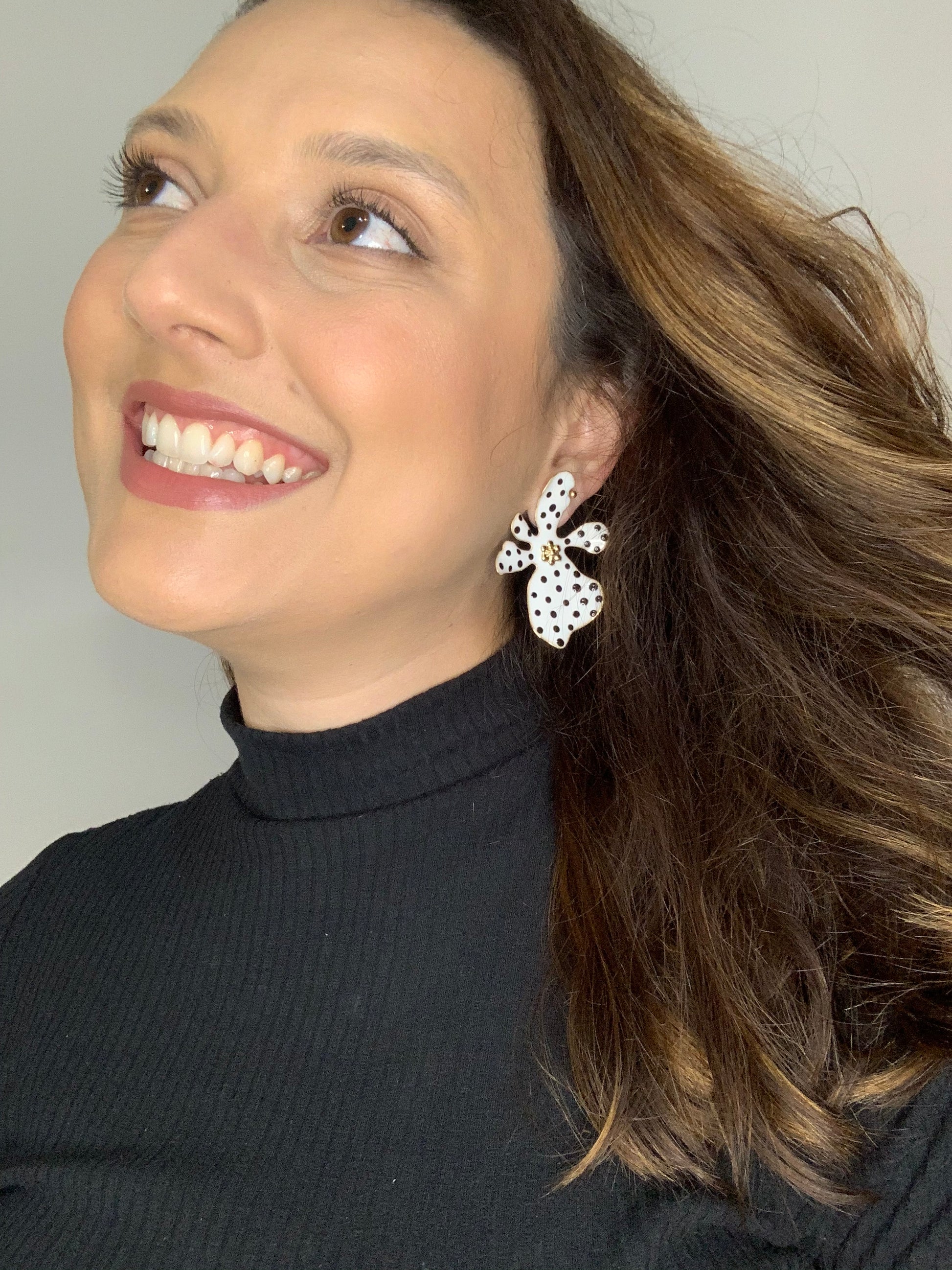 White and Black Polka Dots Earrings